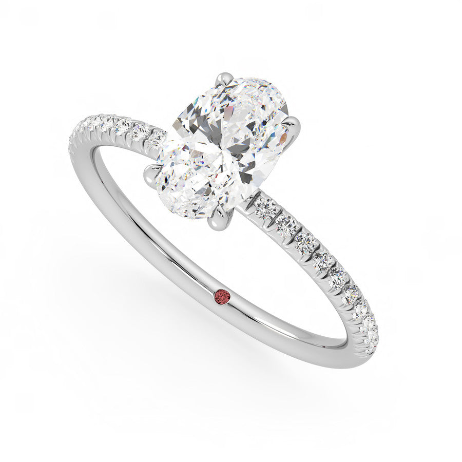 En sidostensring är ett fantastiskt val som kan specialanpassas för att bli en symbol för den unika och djupa kärleken mellan er. Med eleganta diamanter infattade även i skenan bjuder den här modellen på oändlig lyster utan att för den delen överskugga mittstenen.